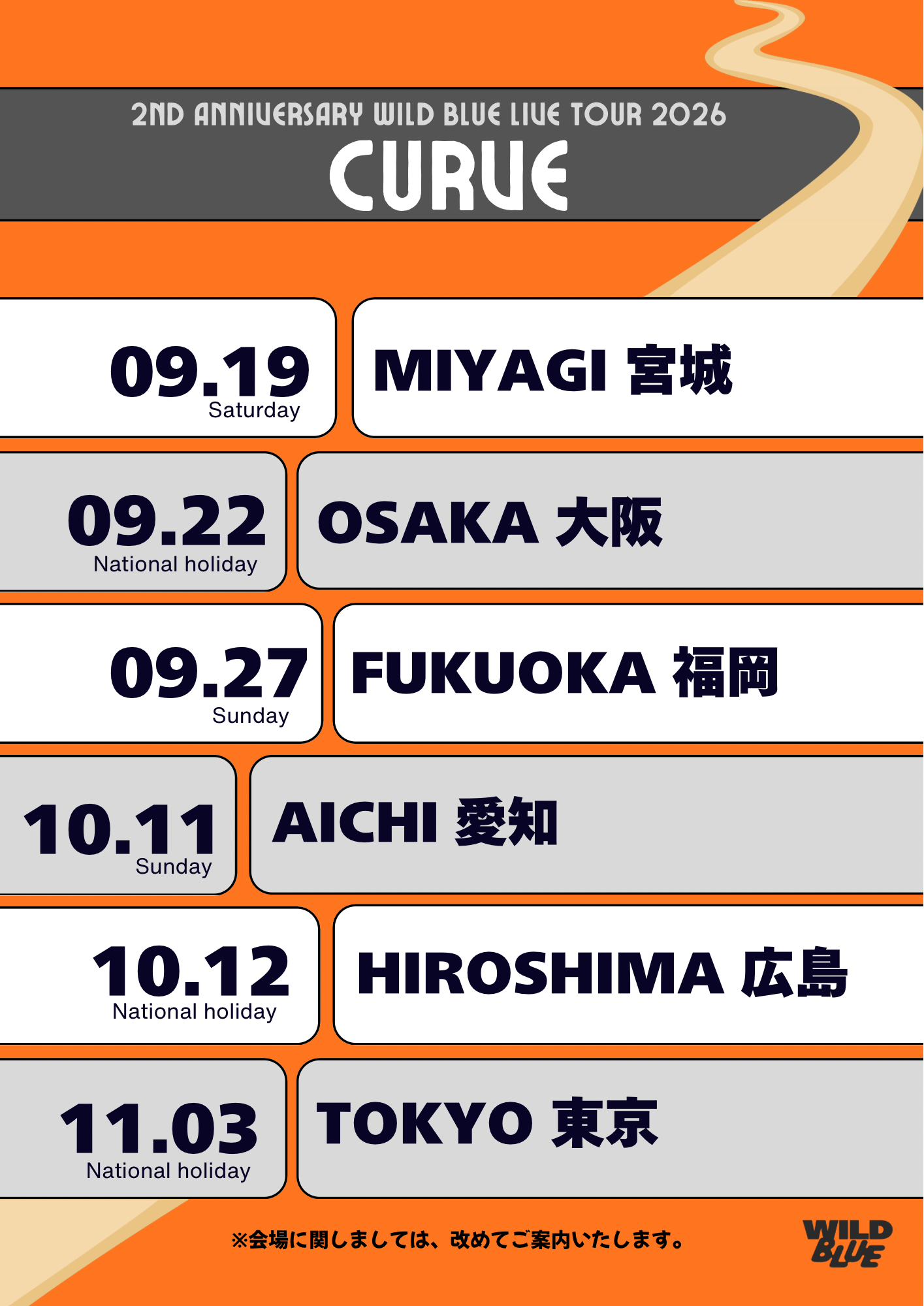 2ND ANNIVERSARY WILD BLUE LIVE TOUR 2026[CURVE]開催日と開催地が決定!